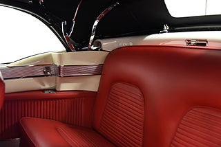 Dubbelt avgassystem som mynnar ut i stötfångar hörnen bak. Den vita lackeringen är i ett fantastiskt fint skick och håller nästan shownivå. Inredningen i rött softskinn är inte sämre den. Väldigt väl gjord och ordning på allt. El styrd soffa fram. Hydrauliska fönsterhissar fram och bak. Elstyrd Svart tyg cab med glasruta och Hardboot. Kromet runt bilen håller högsta nivå på skick så som resten av bilen. Kromade ekerhjul med White Wall däck 8.20-15 med ca 8mm mönsterdjup. Så är du på jakt efter en bil som kombinerar klassisk stil och en tidlös aura av lyx då är Cadillac Eldorado 1953 definitivt valet för dig. Så ta chansen att äga en bit amerikansk bilhistoria som dessutom är ett unikt samlarobjekt.