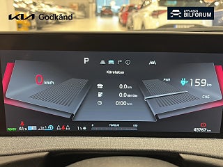19" aluminiumfälgar, 2 x 12.3" välvda pekskärmar inklusive navigationssystem, DAB-radio samt Kia Connect, 10.5 kW 3-fasladdare (Ombordladdare), Apple CarPlay™ och Android Auto™, ACC 2-zons klimatanläggning, Autobroms med fotgängar- & cyklistskydd, Autobroms vid vänstersväng, Automatisk avbländbar innerbackspegel, AUX & USB, Backkamera med dynamisk projicering, Batteriuppvärmningssystem för optimal laddning vid låga temperaturer, Bluetooth® med röststyrning, Delläderklädsel (artificiellt läder samt tyg), Dödavinkelvarning & varning för bakomvarande trafik, Elfönsterhissar fram och bak, Elinfällbara & uppvärmbara sidobackspeglar med blinkers, Elektronisk parkeringsbroms, Elmanövrerad baklucka, Eluppvärmda framsäten, Energibesparande värmepumpsystem för effektiv uppvärming/nedkylning av kupén, Farthållare adaptiv med stop & go, Filövervakningssystem aktivt, Framstolar ställbara i höjdled, Elförarstol RELAXATION med minnesfunktion, Insynsskydd, Nyckelfritt system med startknapp, Parkeringssensorer fram och bak, Passagerarstol med elsvankstöd, LED-strålkastare, Ratt läderklädd (veganläder) och eluppvärmd, Rattpaddlar för nivå av bromsenergiåtervinning, Regnsensor, Ryggstöd bak fäll-/delbart 60/40, Trötthetsvarnare (Driver Attention Warning), Vätskekylt batteri som tillåter upprepade snabbladdningar (DC-laddning)