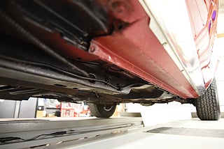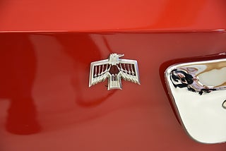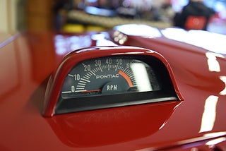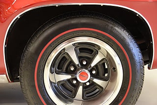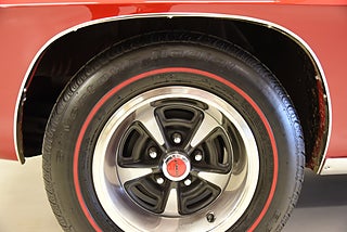 Pontiac Ralley Wheels med 215/70-14 däck och ca 7mm mönsterdjup. Denna bil är klar för sommarens cruisingar med sol och ned fällt tak. Bilen sticker ut rejält med det fina skicket och den härliga röda kulören. Besiktigad 2020-07-15 och nu besiktningsbefriad.