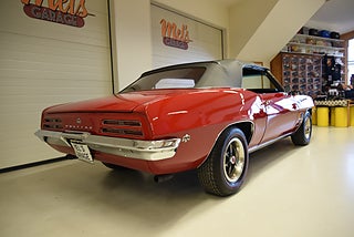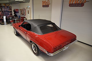 Mel’s Garage specialisten på förmedling av klassiska bilar med konstant stor efterfrågan på varierande modeller i olika prisklasser, All form av finansiering erbjuds, Wasa Kredit med 20% kontant eller My Money, Vi kan leverera eller hämta er bil över hela Sverige i öppen eller heltäckt transport till fördelaktigt pris. Totalt ca 100 bilder på denna bil finns på http://www.bytbil.com/handlare/mels-garage-6856, Denna gång har vi fått in en Pontiac Firebird Cabriolet 1969 med samma ägare i ca 40år. En Pontiac i ett allmänt mycket fint skick. V8 428 4v helrenoverad för ett antal år sedan och går riktigt fint. Bilen såldes ny med 350 motor. TH 350 automatlåda som även den blivit renoverad och genomgången. Original 10 bultad bakaxel. Trumbromsar fram och bak med servo. Styrservo. Bilen blev omlackerad 2019 i delar och blivit sparsamt brukad efter det så lackeringen är i ett härligt bra skick. Bra inpassning av dörrar och luckor. Och naturligtvis varvräknaren i huven som det ska vara. Kromet runt bilen är även det i ett utmärkt skick. Inredning i svart vinyl som byttes av Wibergs Möbler och är idag i ett underbart skick rakt igenom med bra detaljarbete. Ägaren har renoverat bilen under många år och slutresultatet är en bil med ett riktigt bra helhetsintryck och väldigt nära original utförande. Svart el styrd vinyl Cab som är hel och fin samt fungerar utan anmärkning.