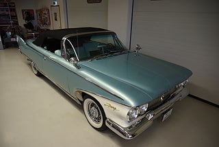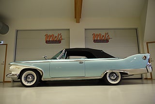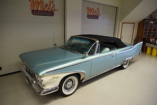 Mel’s Garage specialisten på förmedling av klassiska bilar med konstant stor efterfrågan på varierande modeller i olika prisklasser, All form av finansiering erbjuds, Wasa Kredit med 20% kontant eller My Money, Vi kan leverera eller hämta er bil över hela Sverige i öppen eller heltäckt transport till fördelaktigt pris. Totalt ca 100 bilder på denna bil finns på http://www.bytbil.com/handlare/mels-garage-6856, Denna gång har vi fått in en Plymouth Sport Fury Cabriolet 1960 i ett underbart fint skick där inget lämnats åt slumpen. V8 318 Polly Head 2v som spinner som en katt. Power Flite tryckknapps automat. Original bakaxel. Dubbelt avgassystem. Bromsskivor fram och trummor bak med servo. Styrservo. Inredningen finns inget att klaga på där golvmattan har silvertrådar samt elstyrda fönsterhissar fram och bak. Elstyrd Tyg Cab i svart med tillhörande Cab skydd i ett mycket bra skick. Cabben styrs via en fjärr dosa så man kan gå runt och vika in cabben om det behövs. Finns även "Swivel front seat" på vänster och höger sida för lättar i och ur stigning. Lackeringen håller även den en väldigt hög nivå och ser nästan ny lackerad ut och en mycket trevlig färg combo. Kromet runt bilen är inget undantag från resten av bilen och är i ett mycket fint skick. Ekerfälgar med spinners och White Wall däck 215/75-14 med ca 6mm mönsterdjup. Bilen har varit i Sverige sedan 1989 och gått igenom denna renovering med ett riktigt fint resultat. Trevlig bil att köra som känns tight och stabil på vägen med en drivlina som fungerar utan anmärkning. Så söker du en bil som sticker ut rejält med det fina skicket och den trevliga färgsättningen skall du titta lite extra på denna karamell.