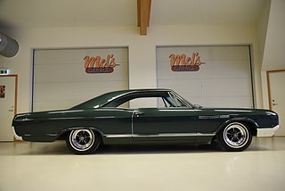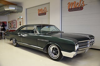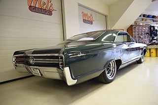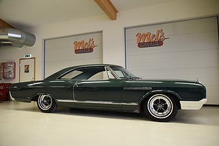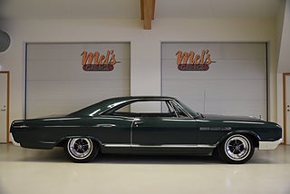 Mel’s Garage specialisten på förmedling av klassiska bilar med konstant stor efterfrågan på varierande modeller i olika prisklasser, All form av finansiering erbjuds, Wasa Kredit med 20% kontant eller My Money, Vi kan leverera eller hämta er bil över hela Sverige i öppen eller heltäckt transport till fördelaktigt pris. Totalt ca 100 bilder på denna bil finns på http://www.bytbil.com/handlare/mels-garage-6856, Denna gång har vi fått in en Buick Lesabre Sport Coupe 1965. En bil som är i mångt och mycket helt original vad vi kan se med en trevlig dokumentation. Bilen köptes ny av Cleatus Porter 23/6 1965 i Michigan. Han lämnade sin gamla bil en Buick Special 1950 i inbyte. Beställnings order och kvitto finns till bilen plus mycket annan trevlig dokumentation. V8 300 4.9L. Superturbine automatlåda. Original bakaxel. Trumbromsar fram och bak med servo. Styrservo. Lackerad i en grön kulör som har sina skavanker men är troligtvis original och skäms inte för sig. Inredningen är i ett fantastiskt fint skick och finns inte något att klaga på. Kromet runt bilen är även det i ett mycket fint skick och gnistrar fint i solen. Enligt Miles mätaren i bilen som står på 17749 miles så har bilen rullat 2307 mil sedan ny om det stämmer helt eller inte vågar vi inte säga men om vi ser på skicket på inredning och detaljer så kan det stämma. Buick Ralley Wheels med 225/75-15 däck med vit rand och ca 7mm mönsterdjup. Original hjul med kapsel och däck följer med bilen. En riktig tidskapsel att sätta sig i och glida fram. Tyst bekväm med en härlig komfort som känns tight och stabil på vägen och en drivlina som fungerar utan anmärkning. Besiktigad 2017-04-21 och nu besiktningsbefriad. Alltid testprotokoll & ca 100 bilder på alla våra bilar. Se alla våra bilar filmade på vår Youtubekanal. www.youtube.com/melsgaragesweden