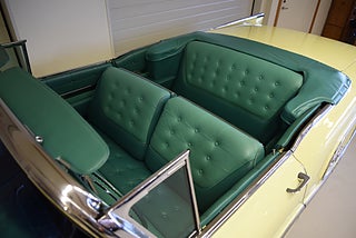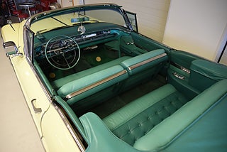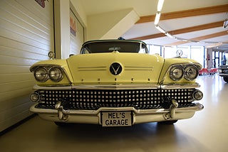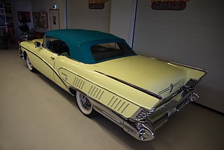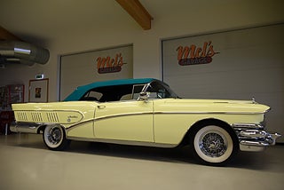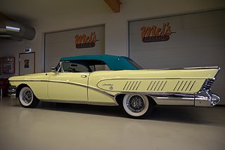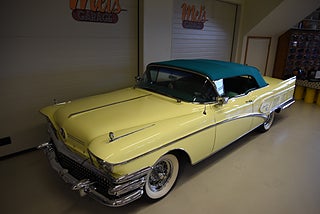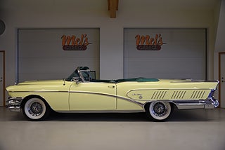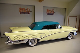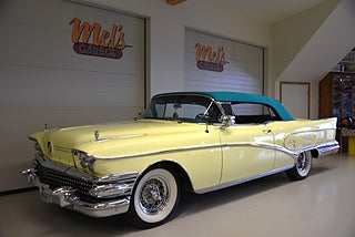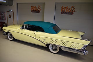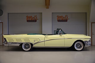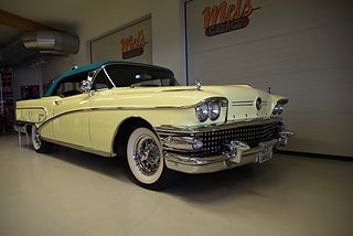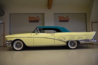 Mel’s Garage specialisten på förmedling av klassiska bilar med konstant stor efterfrågan på varierande modeller i olika prisklasser, All form av finansiering erbjuds, Wasa Kredit med 20% kontant eller My Money, Vi kan leverera eller hämta er bil över hela Sverige i öppen eller heltäckt transport till fördelaktigt pris. Totalt ca 100 bilder på denna bil finns på http://www.bytbil.com/handlare/mels-garage-6856, Denna gång har vi fått in en Helrenoverad Buick Limited Convertible 1958. En av 839st tillverkade. Bilen är återställd till ett väldigt fint originalskick. Bilen är naturligtvis ramlyft och renoverad in i minsta detalj och allt som varit dåligt är renoverat eller bytt till nya delar. Bilen är renoverad av en erkänd bilrenoverarei Sverige för ca 20 år sedan. Nyrenoverad motor och växellåda. Lackerad i delar i original kulören "Mojave Yellow" med 2 tons grön inredning. Bilen är utrustad med servobromsar. Servostyrning. Elantenn. 6-Way elsoffa. Elhissar fram och bak. Elstyrd cab. Autronic eye och dubbla sökarlyktor. Sedan bilen blev klar har den körts ca 500 mil. Det är idag extremt svårt att renovera en sådan här bil då väldigt mycket delar inte går att hitta. En buick väcker alltid beundran men en Buick Limited Convertible är ett konstverk på hjul som är tillverkad i få exemplar. Så passa på att införskaffa en klenod som väcker uppseende var du än kommer.