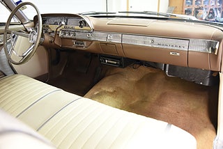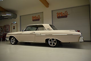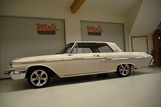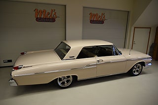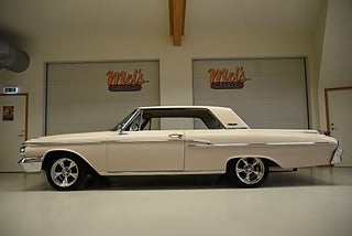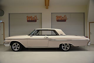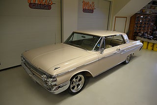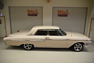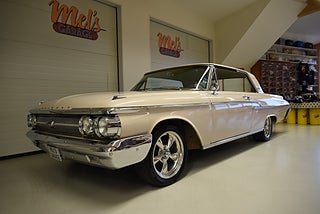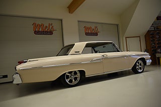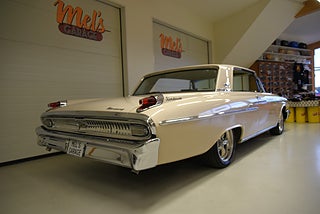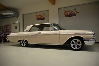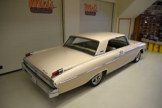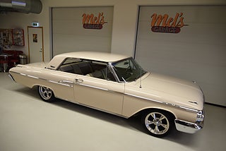 Mel’s Garage specialisten på förmedling av klassiska bilar med konstant stor efterfrågan på varierande modeller i olika prisklasser, All form av finansiering erbjuds, Wasa Kredit med 20% kontant eller My Money, Vi kan leverera eller hämta er bil över hela Sverige i öppen eller heltäckt transport till fördelaktigt pris. Totalt ca 100 bilder på denna bil finns på http://www.bytbil.com/handlare/mels-garage-6856, Denna gång har vi fått in en Mercury Monterey 2-dr HT 1962. En ovanlig bilmodell ute på våra vägar. V8 352 BB på ca 223hk som vart helt renoverad 2018 och går idag superfint. Borrad 0, 30 och med Edelbrock insug och förgasare samt ventilkåpor. Aluminium kylare med separat kylare till automatlådan. 3 vxl Merc-O-Matic automatlåda. Trumbromsar fram och bak utan servo. Styrservo. 9" bakaxel med 3.00:1 utväxling. Dubbelt avgassystem som mullrar fint. Bilen har troligtvis blivit om lackerad för ett antal år sedan och har lite skavanker men skäms inte för sig på något vis. Inredning i "Light Beige" vinyl är i ett fint bruksskick där det finns en reva i sittdynan på baksätet men i övrigt i ett fint skick. Modern stereo med USB BT AUX samt slutsteg och en baslåda i bagage rum. American Racing fälgar med 215/50-17 fram och 245/45-17 bak med ca 7mm mönsterdjup. En mycket bra åk och cruising bil som går bra i drivlinan som på vägen och väcker uppseende då det är en ovanlig bil i ett allmän riktigt trevligt skick. Samma ägare sen 2012-06-15.