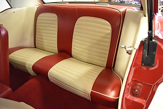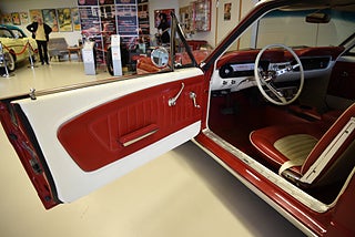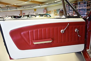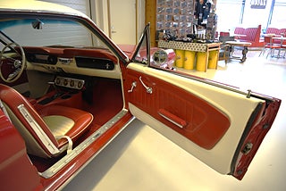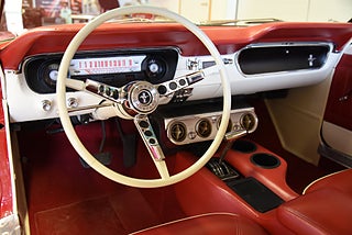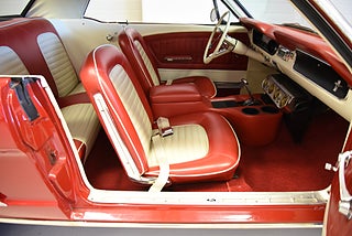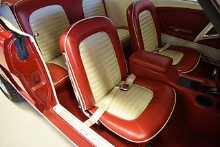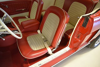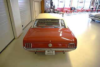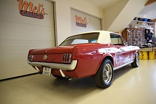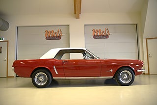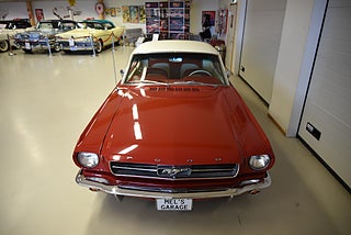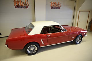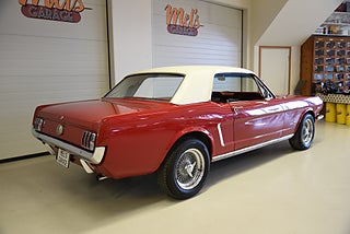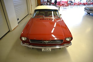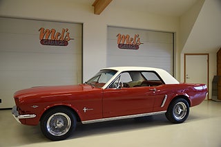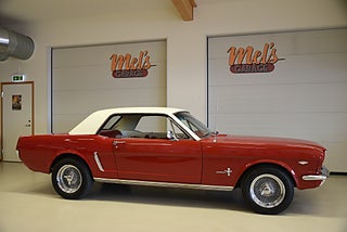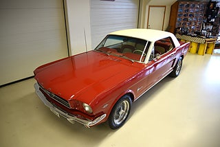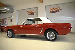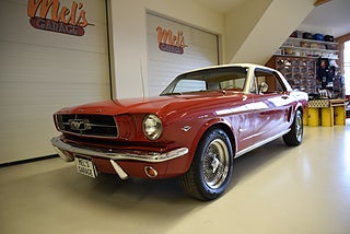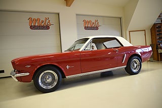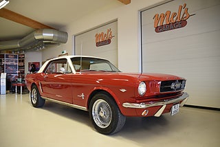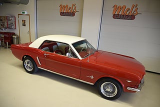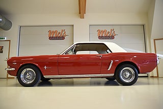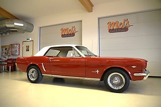 Mel’s Garage specialisten på förmedling av klassiska bilar med konstant stor efterfrågan på varierande modeller i olika prisklasser, All form av finansiering erbjuds, Wasa Kredit med 20% kontant eller My Money, Vi kan leverera eller hämta er bil över hela Sverige i öppen eller heltäckt transport till fördelaktigt pris. Totalt ca 100 bilder på denna bil finns på http://www.bytbil.com/handlare/mels-garage-6856, Denna gång har vi fått in en Ford Mustang 2-dr HT 1965. Tillverkades 8/9 1964 i San Jose. Då var bilen Wimbeledon White men har senare blivit lackerad röd för ett antal år sedan. V8 289 4v. C4 automatlåda. 8" bakaxel med 3.00:1 i utväxling. Trumbromsar fram och bak utan servo. Servostyrning. Dubbelt avgassystem. Hi Jackers. Lacken är blank och fin men har sina brister och en del bubblor. Vitt vinyltak i ett riktigt bra skick. Inredning i röd/vit vinyl som är i ett härligt bra skick rakt igenom. Bälten fram. Modern Stereo. Ekerfälgar med spinners och 215/60-15 bak samt 205/60-15 fram med ca 7mm mönsterdjup. Besiktigad 2017-05-04 och nu besiktningsbefriad. En ikonisk mustang från 1965 sticker alltid ut och är populära. Bilen går riktigt bra i drivlinan och skäms inte för sig på något vis.