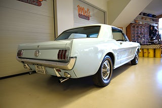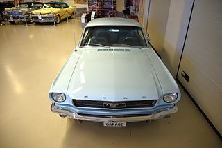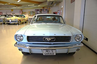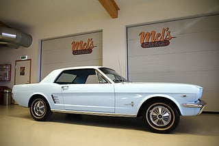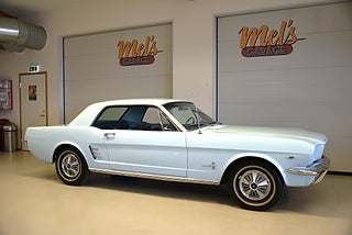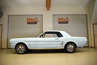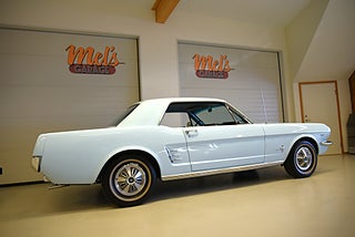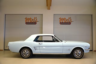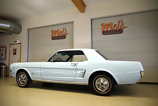 Mel’s Garage specialisten på förmedling av klassiska bilar med konstant stor efterfrågan på varierande modeller i olika prisklasser, All form av finansiering erbjuds, Wasa Kredit med 20% kontant eller My Money, Vi kan leverera eller hämta er bil över hela Sverige i öppen eller heltäckt transport till fördelaktigt pris. Totalt ca 100 bilder på denna bil finns på http://www.bytbil.com/handlare/mels-garage-6856, Denna gång har vi fått in en Ford Mustang HT 1966. V8 289 cui med tvåportsförgasare. C4 automatlåda. 8 tums bakaxel med nyare klump och ändrad utväxling till 3.00:1 samt nya drivaxlar och lager. Trumbromsar fram och bak med servo. Styrservo. Dubbelt avgassystem med H-rör och ett lagom muller. Lackerad i "Light Bleu" som är i ett riktigt fint skick lika så kromet runt bilen som håller näst intill nyskick. Inredning i ljus och mörkblå vinyl är även den i ett fantastiskt fint skick rakt igenom med bälten fram och bak i blå färg. AC som kyler för varma sommardagar. Hastighetsmätare graderad i km/h. Original radion fungerar men det finns en modern i handskfacket. Original plåtfälgar med kapsel och 195/75-15 däck med smal vit rand och ca 7mm mönsterdjup. Besiktigad 2016-09-07 och nu besiktningsbefriad. Bilen byggdes den 4/11 1965 i San Jose CA. Ägaren har underhållit bilen på ett mycket bra sätt så det är mycket som är bytt på bilen under årens lopp. Går riktigt bra på vägen så som i drivlinan och känns solid utan skrammel eller gnissel. Bilen bör ses live för att uppskatta det fina skicket och den härliga färgkulören. Så söker du en riktigt välhållen Mustang så passa på.