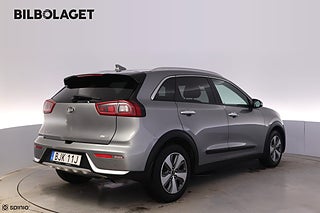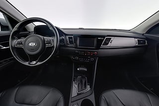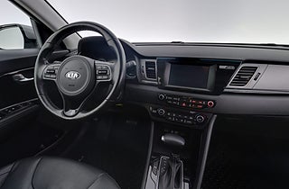 Kia Niro Hybrid är en smidig liten SUV som kombinerar elhybridteknik med låg förbrukning och enkel vardag. Den självladdande hybriddriften ger tyst körning i stadstrafik och effektiv framdrift på landsväg med en 1,6 GDI bensinmotor som samverkar med elmotorn.