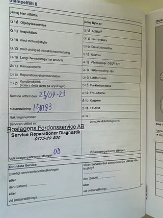 Senaste Service utförd 2025-05-28 vid 18901 mil,