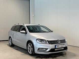 **AXJ647** Nyinkommen Volkswagen Passat R-Line. En kombi med fyrhjulsdrift och låg förbrukning. Utrustad med bl.a dragkrok, värmare, skinnklädsel och backkamera. Dubbade vinterhjul ingår. LED-ramp sitter monterad i fronten.