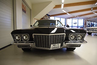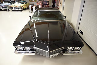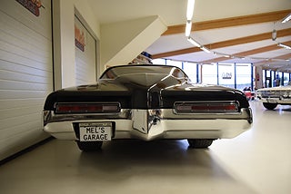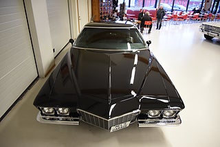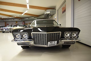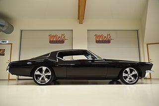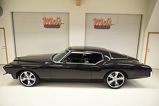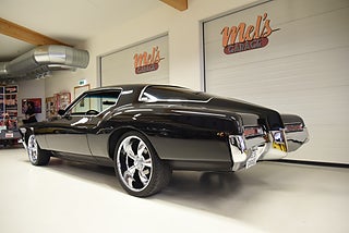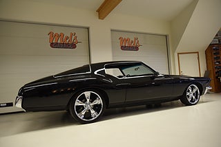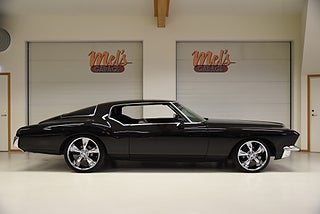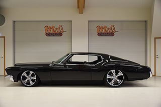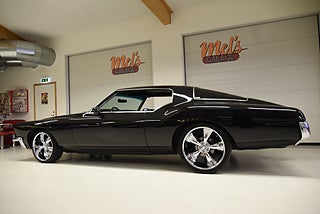 Mel’s Garage specialisten på förmedling av klassiska bilar med konstant stor efterfrågan på varierande modeller i olika prisklasser, All form av finansiering erbjuds, Wasa Kredit med 20% kontant eller My Money, Vi kan leverera eller hämta er bil över hela Sverige i öppen eller heltäckt transport till fördelaktigt pris. Totalt ca 100 bilder på denna bil finns på http://www.bytbil.com/handlare/mels-garage-6856, Denna gång har vi fått in en Buick Riviera 2-dr HT 1972 i ett helt underbart skick rakt igenom där -71ans bagage lucka med dom fräna luftintagen är monterad. V8 455 4v med Edelbrock insug och Holley förgasare. Brytarlös tändning. TH 400 automatlåda. 12 bultad bakaxel. Skivbromsar fram och bak med servo. Servostyrning. ny kardan med knutar. Luftfjädring fram och bak med tre stycken förprogrammerade lägen. Så det är lätt att komma iväg att trycka på en knapp bara. Lackerad i en blank svart kulör med ett mycket bra resultat. Inga dörrhandtag utan öppnas med fjärrdosa. Inredning i svart soft skinn är även den nära inpå utställningsskick med Elstol förare. Elhissar fram och bak. Tonade rutor med solfilm på bakrutorna. Bälten fram. AC som kyler. Farthållare (fungerar ej). Ny överdel på instrumentbrädan. Tilt ratt. En modern stereo med BT AUX CD baslåda och slutsteg i bagagerum så det spelar på bra. Kromade fälgar med 245/35-20 fram och 265/35-22 bak med ca 6mm mönsterdjup. En Buick Riviera ser man sällan ute på annons och detta exemplar är något utöver det vanliga som bör ses live i vår utställningshall för att uppskatta det fina skicket. En bekväm och skön åkbil som går fint i drivlinan så som på vägen och sticker ut rejält med det fina skicket. Besiktigad 2021-05-31 och nu besiktningsbefriad.