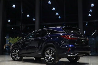 Lexus RX450h L Executive med 313 hk och AWD 7-sits, i den eleganta färgen Deep Blue Mica Metallic.