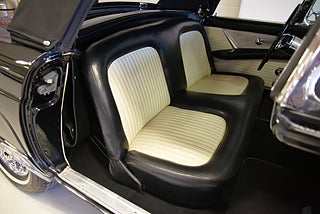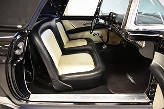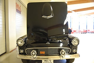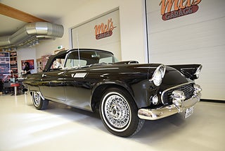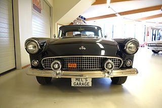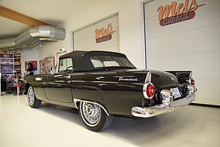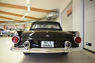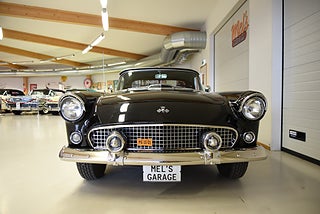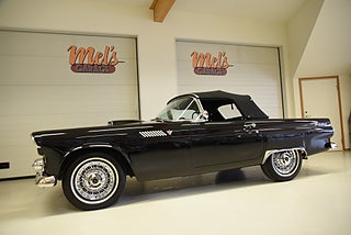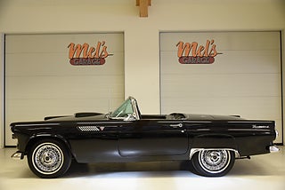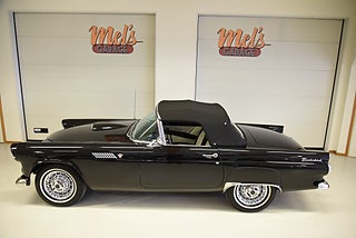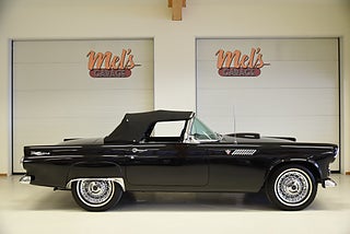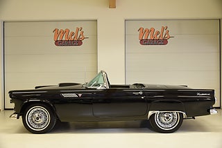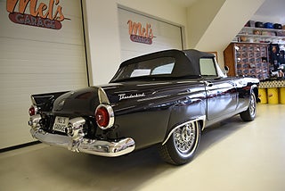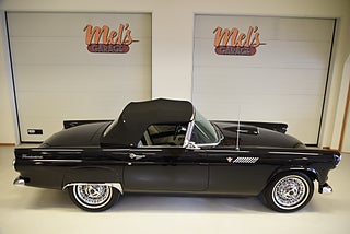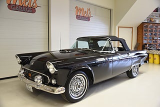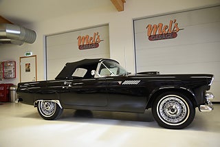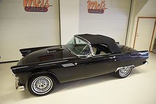 Mel’s Garage specialisten på förmedling av klassiska bilar med konstant stor efterfrågan på varierande modeller i olika prisklasser, All form av finansiering erbjuds, Wasa Kredit med 20% kontant eller My Money, Vi kan leverera eller hämta er bil över hela Sverige i öppen eller heltäckt transport till fördelaktigt pris. Totalt ca 100 bilder på denna bil finns på http://www.bytbil.com/handlare/mels-garage-6856, Denna gång har vi fått in en Ford Thunderbird 1955 i ett riktigt fint skick rakt igenom. V8 292 med ny Edelbrock förgasare och en tunnare luftburk men originalförgasare och luftburk följer med bilen. Ford-O-Matic automatlåda. Trumbromsar fram och bak med servo. Styrservo. Hi Jackers bak. Inredning i svart/vit vinyl i ett mycket bra skick med el styrda fönsterhissar. Elstyrd soffa 4-way. Svart tygcab med plastruta som även den är i ett härligt bra skick. Hardtop finns till bilen och ser riktigt trevlig ut. Sitt brunns kapell finns och är förvarat bakom ryggstödet. Svart solid lackering som gjordes för ett antal år sedan och är fortfarande i ett härligt bra skick. Kromet runt bilen är riktigt bra även det. Ekerfälgar med spinners och 205/75-15 däck med smal vit rand ca 7mm mönsterdjup. Riktigt trevlig Thunderbird rakt igenom som sticker ut rejält med det fina skicket och en drivlina som fungerar utmärkt. Känns tight och stabil på vägen. Så är ni sugna på en riktigt fin Thunderbird så bör ni absolut titta extra på denna. Besiktigad 2017-08-15 och nu besiktningsbefriad. Alltid testprotokoll & ca 100 bilder på alla våra bilar. Se alla våra bilar filmade på vår Youtubekanal. www.youtube.com/melsgaragesweden