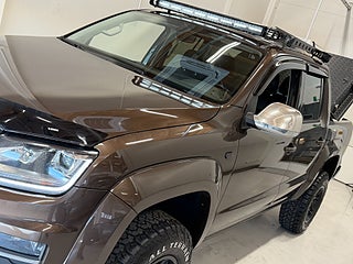 Nu finns denna fina VW Amarok i lager redo för leverans! En leasbar pickis med den populära V6-maskinen och rätt stuk. Välutrustad från fabrik med dieselvärmare på fjärr, backkamera, diffspärr, skinnklädsel i svart nappa - och därefter smakfullt besmyckad med ett par DIRT-fälgar, Blackbear mudders och all belysning du kan tänka dig! Varmt välkommen att slå till på denna fina Amarok!