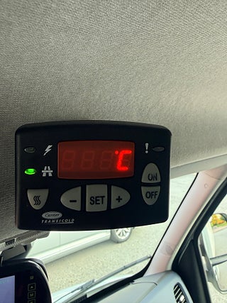 Kylbil utrustad med bl.a. Kylaggregat från Carrier, Eluttag för parkeringskyla, Parkeringsvärmare (Webasto), Backkamera.