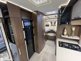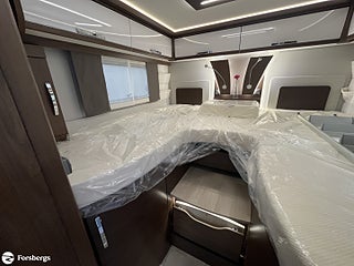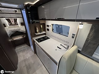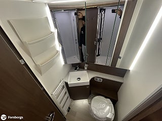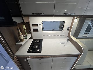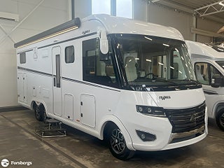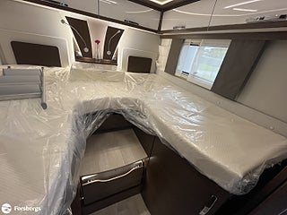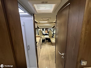 Hjuldrift: Framhjulsdrift, Klädsel: Läderklädsel: Snow 798, Märke chassi: Fiat / AL-KO, Fiat std chassi Integrerad, Förstärkt fjädring fram (Fiat), Induktionsladdning mobil tfn, DAB radio med navigation och styrning med rattknappar, Designpaket Fiat / AlKo Boggie. 16" Alufälgar (6st), Technotrim dekor instr.bräda, Läderklädd ratt & vxl-spaksknopp., LED-strålkastare (för Fiat), för halvljus och dimljus. Endast för Fiat Integrerad., Titan standardutrustning : TITAN utvändig design, elektrisk plisse mörkläggningsgardin samt insynsskydd, manuella stödben (förutom om luftfjädring beställs som tillval), 2-4 x uttag 230 V (beroende på layout), extra uttag 12V + 230V i garaget på höger sida, 2-4 x USB-uttag (beroende på layout), Titan utrustningspaket Markis 5, 5 m (manuellt manövrerad), Thermo Guard Plus (11 års täthetsga, Förar- och passagerarairbag, Traction+ inkl elektronisk stabilitetskontroll (ESC) och backstartshjälp, Motorbromshjälp vid körning i kraftig lutning, Elektrisk tillsatsvärmare, Hagelresistent tak i glasfiber, Genomgående dubbelgolv med ca 350 mm inre höjd, Centrallås för bodels- och förardörr via Fiat originalnyckel, Elektrisk mörkläggningsplissé för integrerade, Manuella stödben (ej tillgängligt vid tillval av luftfjädring), Förvaringsutrymme under sittgrupp med LED-belysning, Fönster Seitz S7 med toning samt myggnät och mörkläggning, Centralförsörjning med slangvinda och kabeltrumma (inkl 15 m kabel), Myggnät integrerat i bodelsdörr och samtliga takluckor, Elektriskt nedsänkbar säng fram, CBE-BUS manöverpanel med LCD-skärm, Ytterbelysning vid bodelsdörr i LED med rörelsevakt, Dimbar stämningsbelysning i LED, Dimbar spotbelysning i LED, 3/4x 230 V-uttag (beroende på planlösning), 230 V-uttag i bakre garage (placerat på passagerarsidan), 12 V-uttag i bakre garage (placerat på passagerarsidan), Färskvattentank ca 150 l inkl möjlighet till 50 l i körläge, Dubbla Thetford toakassetter, Alde Compact 3030 vattenburen uppvärmning, Kylskåp TecTower 10 med dubbelsidig öppning