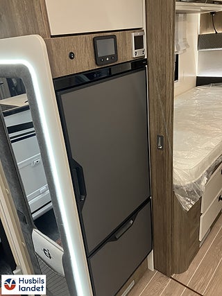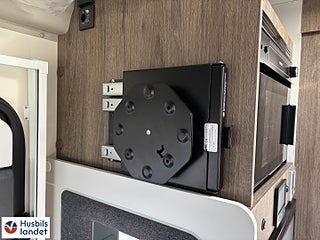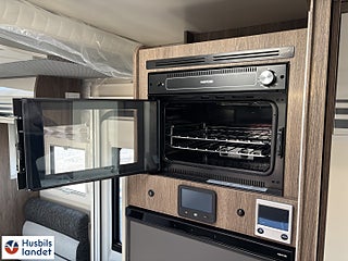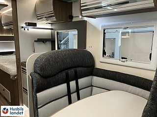 Hjuldrift: Framhjulsdrift, 8" semi-digital instrumentpanel, Halvintegrerad med taksäng, Värmesystem: Alde vattenburen värme, Truma Combi 6 Diesel + eltillsats, Solpanel 200w med MPPT regulator, LED belysning genomgående i bodelen