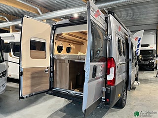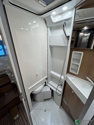 Chassipaket: Parkeringshjälp med sensorer bak ·Bränsle 90 lit · Laddningsbooster · Mörkläggningsgardin front- och sidorutor i förarhytten· Instrumentbräda-ventilationsgaller krom ·Radioförberedd m takantenn och DAB+ och högtalare x 4· Pass stol inställbar höjd ·Pilotstolar klädda med inredningens tyg · ·Myggnät bakom skjutdörr· Ytterbackspeglar elektriskt uppvärmda och ställbara, Karosspaket: Taket klätt på insidan med mikrofibermaterial· Takbaldakin i bodelen med dämpad LED-belysning· Uppgradering kök· Kallskumsmadrass i bakre säng · Truma CP Plus digital kontrollpanel · Lastsäkringssystem bagage · Avloppstank inbyggd och isolerad, Förarassistentpaket Fiat: Aktiv nödbromsassistent·Avåkningsvarnare·Helljusassistent·Vägmärkesidentifiering·Regn- och ljussensor·Däcktryckssensorer·Elektriskt infällbara backspegla, Truma Combi 6 D+E (diesel/eldrift·), Infotainmentpaket Fiat: Elektrisk parkeringsbroms·Keyless entry & Go·Digitalt kombiinstrument·Multimediasystem Fiat 10.1 inkl navigering hus, Mediacenter Pioneer 9"med DAB+ navigering, Matta avtagbar i förardel och bodel, LED-ytterbelysning inkl dropplist