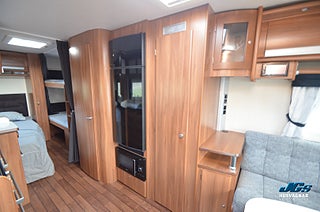 Förtält Ventura Pacific 300 (djup 3m) med lättviktsstativ (IXL), Cykelställ fram för två cyklar, Alde vattenburen golv- och centralvärme, AL-KO ATC antisladdsystem, AL-KO AKS 3004 säkerhetsdrag, Godkänt fukttest 2025-10-15, Besiktigad t.o.m. 2027-09-30