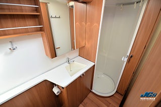 Alde vattenburen centralvärme, Fläkt i taklucka över säng, Gråvattentank förbikopplingsbar, Elektrisk miniugn under kyl, Godkänt fukttest 2025-07-30, Godkänt gasoltest 2025-07-30, Service genomförd 2025-07-30, Besiktigad till 2025-09-30
