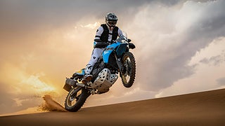 När du kör Ténéré 700 Rally kör du den ultimata äventyrsmotorcykeln för off-road körning. Rally Ténéré 700 tar sig till en ny nivå genom att drivas med Yamahas prisbelönta CP2-motor som är inrymd i en tuff men ändå lätt stålram, designad för att ta sig an den tuffaste terrängen. Utvecklad för rally och fullt justerbar fjädring från KYB, 255 mm markfrigång och en specifikation som utformats för att ge föraren perfekt kontroll i de mest extrema förhållanden, det är en motorcykel för dem som vill leva livet utan gränser.