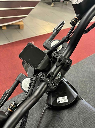 Ramen i supercarbon-stål är testad för tuffa tag och klarar upp till 5 miljoner påfrestningar. Den är gjord för att tåla både stadskörning och grusvägar. Du får en stabil känsla tack vare den låga vikten på 93 kg (inklusive batteri), lång hjulbas på 1295 mm och breda 17-tumsdäck som sitter säkert i kurvorna. Hyperide-S klättrar uppför backar på upp till 20° utan att tappa kraft, vilket gör att du enkelt tar dig dit du ska – oavsett om det är uppför garageinfarten eller en slinga i skogen. Skivbromsar fram och bak ger dig bromskraft när du behöver det som mest.