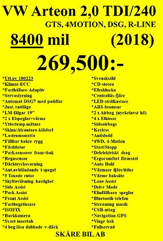 Volkswagen Arteon 2.0 TDI 240hk 4-Motion GTS R-Line DSG7