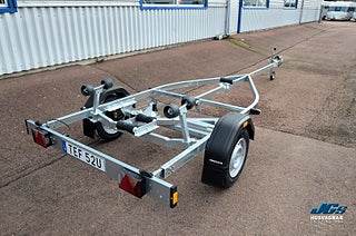 Obromsad trailer för mindre båtar upp till 18 fot. Trailern har tippbar bakre vagga och justerbara sidorullar i hög kvalitet för enkel anpassning till din båt. Varmgalvaniserat chassi för lång hållbarhet. Elen är helt skyddad i båttrailerns chassi. Vattentäta hjullager förlänger livstiden. Justerbart vinschtorn. Enkel avtagbar ljusramp med quick-release-fästen för smidig av- och pålastning., > Ljusramp med quick-release-fästen, > Vinsch och justerbart vinschtorn, Alltid när du köper ett släp från Fogelsta, > Brett utbud av tillbehör., > Stort reservdelssortiment., Utv. totalmått (cm) 554x177, Hjulspecifikation 145/80R13, Heltäckande stänkskärmar Nej, EAN (Annata sync) 5702623119590, Mer information om släpvagnen:, /slapvagnar/battrailers/obromsade-battrailers/180750ubl-311959