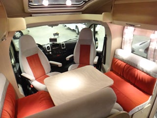 Husbilen ger en varm och ombonad känsla när man kliver in, i både planlösningen och klädselvalen.