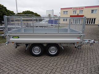 2-Axlar Bromsad Totalvikt: 3000kg Lastvikt: 2330kg Flakmått: 306x175x35 • Mångsidig släpvagn med 3-vägstipp • Vridstyv chassikonstruktion för säker tipp och köregenskap • Stålgolv • Svetsad ihålig profilkonstruktion helt förzinkad i värmebad • Förstärkt stödhjul 60mm klarar 500kg last • 6st surrningsöglo infällda i golvet • 6st surrningsöglor under flakbotten • Bakläm framläm sidolämar i anodiserad aluminium, alla fyra sidor öppningsbara och löstagbara med yttre handtag • Elektrisk utrustning helt vattentät • Pendlande bakläm vid tipp • Belysning med 13-polig kontakt och backljus • Elektrisk utrustning helt vattentät. • Elektrisk hydrauliska tipp mekanismen. Vi har Sveriges största sortiment av släpvagnar till mycket förmånliga priser. Vi har tillgång till över 500 olika varianter i olika kategorier från 600-3500kg. Vi har många olika modeller i lager och får regelbundet hem nya leveranser. Vi levererar inom hela Sverige. Kontakta oss om ni inte hittar den släpvagnsvariant ni söker så ska vi göra allt för att hjälpa er, vi bygger även släpar efter ert behov. Vi är registrerad hos transportstyrelsen som stolt generalagent och importör för tyska släpvagnsmärken Unsinn & Koch. *Obromsade släp *Bromsade Släp *Kåpsläp *Skotersläp *Skåpsläp *Biltransporter *Entreprenadsläp *Tippsläp *Kylsläp *Frysläp *Mc släp *Specialsläp Vi erbjuder flera olika betalningsmetoder som t.ex. kortbetalning, leasing. Släponline Besöksadress Lärlingsgatan 33 904 22 Umeå