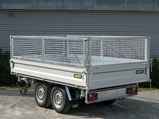 2-Axlar Bromsad Totalvikt: 3000kg Lastvikt: 2330kg Flakmått: 306x175x35 • Mångsidig släpvagn med 3-vägstipp . Gallergrindar • Vridstyv chassikonstruktion för säker tipp och köregenskap • Stålgolv • Svetsad ihålig profilkonstruktion helt förzinkad i värmebad • Förstärkt stödhjul 60mm klarar 500kg last • 6st surrningsöglo infällda i golvet • 6st surrningsöglor under flakbotten • Bakläm framläm sidolämar i anodiserad aluminium, alla fyra sidor öppningsbara och löstagbara med yttre handtag • Elektrisk utrustning helt vattentät • Pendlande bakläm vid tipp • Belysning med 13-polig kontakt och backljus • Elektrisk utrustning helt vattentät. • Elektrisk hydrauliska tipp mekanismen. Vi har Sveriges största sortiment av släpvagnar till mycket förmånliga priser. Vi har tillgång till över 500 olika varianter i olika kategorier från 600-3500kg. Vi har många olika modeller i lager och får regelbundet hem nya leveranser. Vi levererar inom hela Sverige. Kontakta oss om ni inte hittar den släpvagnsvariant ni söker så ska vi göra allt för att hjälpa er, vi bygger även släpar efter ert behov. Vi är registrerad hos transportstyrelsen som stolt generalagent och importör för tyska släpvagnsmärken Unsinn & Koch. *Obromsade släp *Bromsade Släp *Kåpsläp *Skotersläp *Skåpsläp *Biltransporter *Entreprenadsläp *Tippsläp *Kylsläp *Frysläp *Mc släp *Specialsläp Vi erbjuder flera olika betalningsmetoder som t.ex. kortbetalning, leasing. Släponline Besöksadress Lärlingsgatan 33 904 22 Umeå