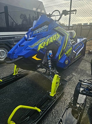 Maskin i fint skick som är utrustad med det mesta! Den har Variatorkit, RP dragkrok, extra lång stänklapp, Kortad till 146 med RP drivhjul/talon m66 matta och en extrakylare.