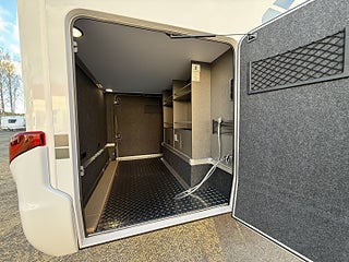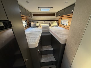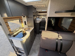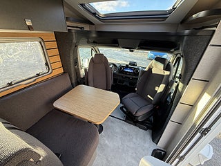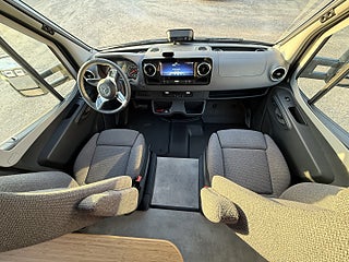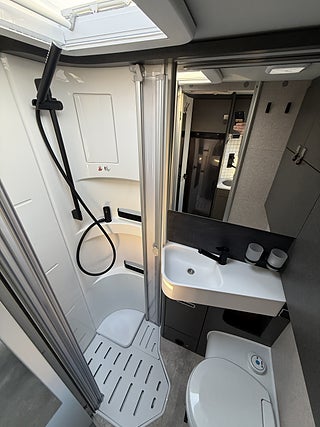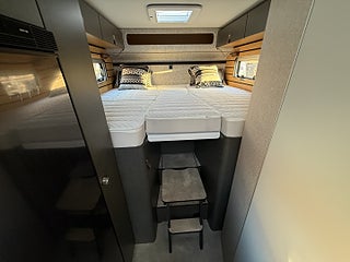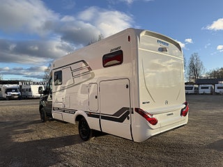 Hjuldrift: Framhjulsdrift, Märke chassi: Mercedes-Benz Sprinter, 2t -417CDI-125KW/170Hk-EuroVI-E, Totalviktssänkning till 3, 5t (förMercedes-BenzSprinter415/417CDI), 16" lättmetallfälgar med året-runt-däck, Lackering förarhytt:Obsidian-svart (Metallic), Automatväxellåda 9G-TRONIC inkl. Hold-funktion, Instruktionsdokument/- manualer på svenska, Nedsänkbar dubbelsäng över sittgruppen med kallskumsmadrass (elektrisk manövrering), Löst duschgolv i samma dekor som golvet, Komfort L-sittgrupp med loungekuddar och bord som kan skjutas i längd- och sidled, HYMER Smart Battery System 2.0 - Utbyggnad: Andra bodelsbatterimodulstruktur 80 Ah LFP inkl. extra laddare (total kapacitet 160 Ah), 1 800 W elpatron (för 6 kW luftburen diesel-värme), Stämningsskapande belysning, Kabelförberedelse solcell, 27" Smart LED-TV med integrerade högtalare, 5G WiFi-router med utomhusantenn och dubbel