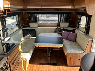 Upptäck friheten på vägen med Cabby 620 Caienna – husvagnen som kombinerar skandinavisk kvalitet, smart design och hög komfort i varje detalj. Denna exklusiva modell är skapad för dig som vill resa utan att kompromissa med bekvämligheten. Med sina genomtänkta lösningar, tidlösa materialval och generösa utrymmen erbjuder Cabby 620 Caienna en känsla av hem, oavsett vart vägarna leder. Interiören präglas av ljusa toner, elegant träfinish och en planlösning som känns både luftig och inbjudande. Här finns gott om utrymme - från den rymliga sittgruppen där kvällarna bjuder in till mysiga stunder, till det välutrustade köket som gör matlagningen enkel och trivsam. Sovavdelningen erbjuder sköna bäddar med hög sovkomfort, och badrummet är utformat med känsla för både stil och funktion. Tack vare Cabby’s välisolerade konstruktion och robusta byggkvalitet är 620 Caienna en husvagn för alla säsonger. Oavsett om du drar till fjällen i vinter eller mot kusten i sommar, kan du räkna med en trygg, tyst och behaglig färd.
