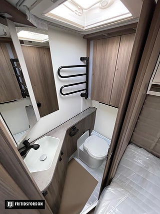 Modellår: 2026, Värmesystem: ALDE - vattenburen centralvärme, ALDE - vattenburen centralvärme, Färskvattentank - frysskyddad, Spillvattentank - frysskyddad, Fönster med mörkläggning/myggnät, Stort kylskåp med separat frys, Nackkuddar