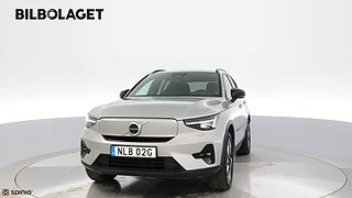 Volvo XC40 Recharge Single Motor Extended Range Ultimate är en modern och smidig eldriven SUV som kombinerar stilren design med smart teknik. Den silverfärgade karossen ger ett elegant intryck och tillsammans med bakhjulsdriften får du en balanserad och behaglig körupplevelse. Den elektriska drivlinan tillsammans med automatväxellåda ger tyst och kraftfull körning.