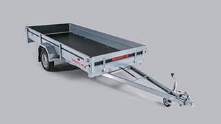 Största vagnen inom obromsade lätta släpvagnar. Tippfunktionen har gasfjäder som standard och baklämmen är förstärkt. Det är möjligt att beställa trailer med annan totalvikt - fråga din återförsäljare. Kallad i folkmun som den minsta skotervagen. För bästa väghållning är vagnen utrustad med bladfjädrar.
