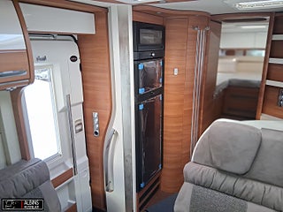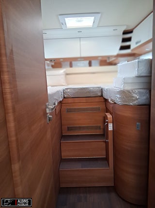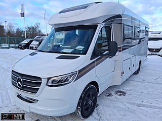 Motortyp: Mercedes Sprinter Euro 6E, Chassi-plus-paket Mercedes: inkluderar: Automatväxellåda 9G-TRONIC inkl. hold-funktion, Motorvariant 170 hk/125 kW, Euro VI E (endast tillsammans med automatväxellåda, 16 tum alufälgar (svart) med åretruntdäck, Helautomatisk klimatanläggning THERMOTRONIC, helluftsfjädring på bakaxel, Förarassistanspaket Mercedes-Benz: inkluderar: Aktiv avståndsassistent DISTRONIC, Däcktrycksövervakningssystem, Durkaluminium för mopedgarage, TV-paket bodel: inkluderar: TV-utdragssystem i sidosittbänken, TV-paket sovrum (4.9 LE): inkluderar: TV-skåp i sovrummet med special TV-utdragssystem, Totalviktshöjning 4 200 kg till 4 500 kg, LED-High-Performance-strålkastare, Centrallås för last- och mopedgarageluckor, Uttagspaket med extra uttag (3 x 230 V, Tec-Tower kombinerad kyl-frys 153 l med sep. gasugn, Kaffekapselmaskin med anslutningssats inkl. ut