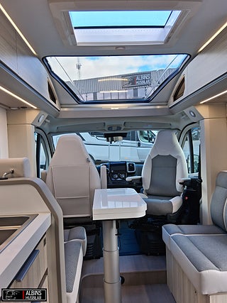 Hjuldrift: Framhjulsdrift, Motortyp: Fiat MultiJet3 2.2, Artense Greymetallic med silverkaross, Elektriskt nedsänkbar säng, Elektrisk tömning av spillvatten, Intelligent hastighetsassistans, Isolerad och uppvärmd spillvattentank, Mörkläggning sidofönster samt vindruta, Panoramafönster i förarhytt, Regn- och skymningssensor, Zenec Multimedia 9" (inkl. backkamera)