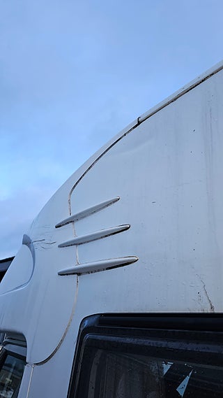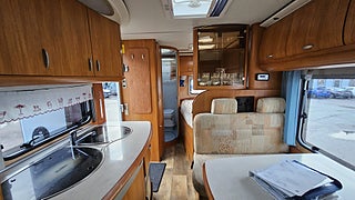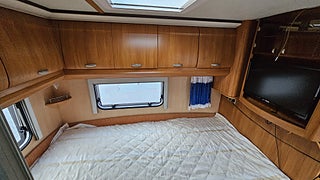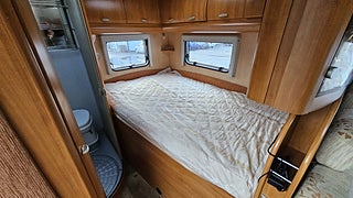 Ny besiktigad fram till 2027-01-31 gasoltestad årsskatt 5642 kr längd 6000 mm bredd 2290 mm tjänstevikt 3160 kg lastvikt 340 kg totalvikt 3500 kg antal passagerare 3 + förare kända brister vänster framsida har en gren körts emot dusch golvet har små sprickor men är lagad