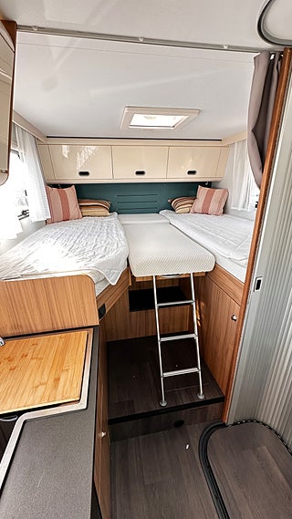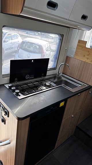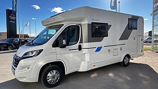 Här hittar du en mycket trevlig husbil med öppen planlösning, smart lösning runt toalett och kök gör att den känns rymlig när man står i köket, med ett stort garage med lastvikt på 650 kg och 5 sovplatser och 5 bältade sittplatser gör att många kan åka med på semester. Välkomen till oss på Nyströms bilar i Västerås , vi byter även in personbilar och finansierar givetvis ditt köp om du önskar.