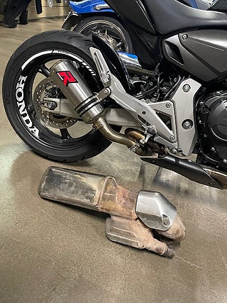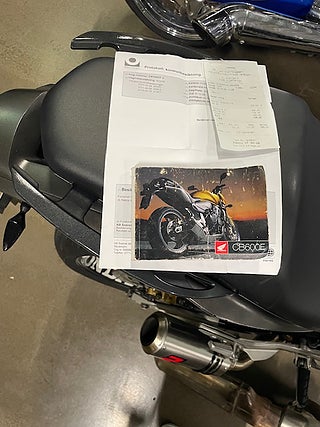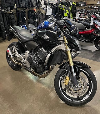 Hej! En fin 2007 Honda CB600A ABS Hornet i rätt färg. Extra Dominator slip on för ett grymt ljud. Extra justerbar kopplings samt broms handtag i svart. Extra bar ends speglar. Både 2 nycklar. Servad maj 2025 med oljebyte oljefilter packboxar gaffel olja bromsbelägg fram och bak. Nya Michelin Road 6 däck fram och bak. Original delar medföljer. Nyligen besiktigad. Välkommen för visning! MVH YAMAHA CENTER VÄSTERÅS
