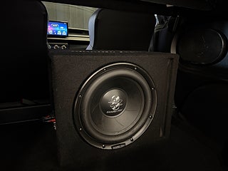 Extrautrustad med gummimattor - 12" baslåda och dubbade vinterhjul.