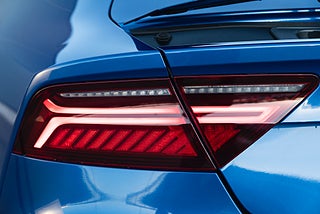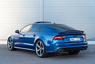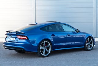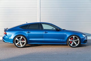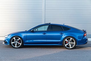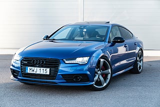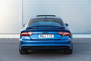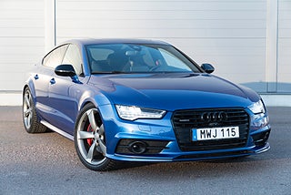 Mycket välutrustad Audi A7 Competition i den exklusiva färgen Sepang blå.