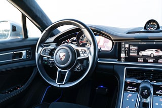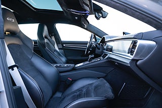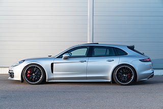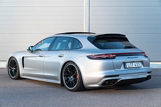Nu har vi fått in en fin välutrustad Porsche Panamera GTS Sport Turismo i den fina färgen gt-silver metallic. Nypris: 1739000 kr. Utrustningslistan är lång med bland annat soft close, night vision, elektrisk dragkrok, head-up display, sport-design paket, 21" fälgar, ljuspaket, parkeringsvärmare med fjärrkontroll, förberedelse för rear seat entertainment, bose-surround system, led-matrix, puls plus, luftfjädring med justerbara stag m.m.