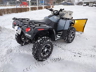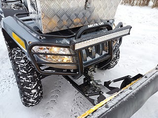 Fyrhjulingen är utrustad med original Arctic Cat koniskt plogblad, LED-ramp fram för optimal sikt i mörker samt en praktisk och robust förvaringslåda i aluminium framtill.