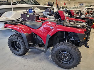 Working class hero säger man om Honda FOREMAN 520, arbetsmaskinernas hjälte nummer ett – FOREMAN! Hondas ATV program med terrängskotrar för arbete är oöverträffat, Med sin nu större motor på hela 518cc med mer effekt och bättre vridmoment har Honda Foreman blivit ett ännu bättre arbetsredskap. Den 5-växlade lådan som manövreras med knappar på styret gör att du är ”bara ett knapptryck” från att alltid ha rätt växel. Denna kombination gör att motorns kraft alltid går direkt ner i marken vilket ger bästa möjliga drift i all situationer. Honda TRX har dessutom motorbroms på samtliga fyra hjul om fyrhjulsdriften är inkopplad. Backen är nu el-styrd så med hjälp av knapp på vänsterhandtaget är det bara att trycka in den och “växla ner knappen” så går backen i oavsett vilken växel som ligger i. Man behöver således inte först lägga i friläge.