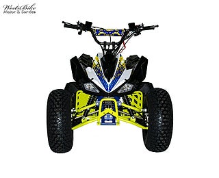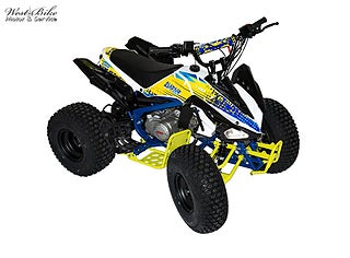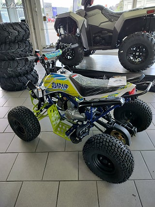 En klassisk högkvalitativ barnfyrhjuling på 110CC. Balanserad kraft med ett väl avstämt chassi. Utrustad med dubbla bärarmar fram, skivbroms bak och automatisk transmission med backväxel., fram - neutral - back & dödmansgrepp., Prisvärd och lättkörd atv som passar från ca 5-6 års ålder.