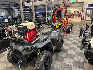 Nu har vi återigen våra populära Kranman paket i lager . Polaris Sportsman 570 Eps Gray Ed T3b -26 med en Kranman T1850 Pro ed -26, Polaris Gray ed har från 2026 Turf drift standar = en hjulsdrift och det gör körningen med vagnen mkt smidigare. Maskinen är utrustad med: Vinsch fram, fjäderbens låsning. Kranman vagnen är en Pro ed och är utrusad med: Honda GX 270 motor, Bromsventil. Rostfi ljuddämpare, Fall plåt vid grind . Välkommen in på en visning, Vi erbjuder förmånlig finans på detta ekipage, Vi hjälper er med Leverans inom hela Sverige..Börjessons ATV AB = Kunskap - Trygghet - Service.