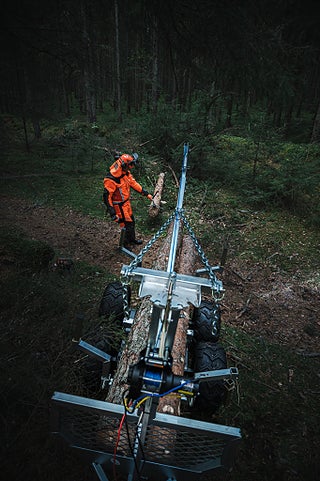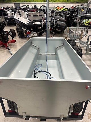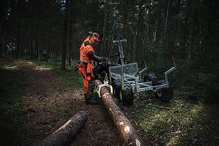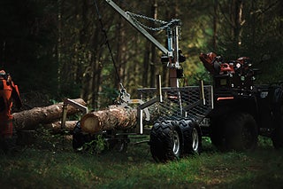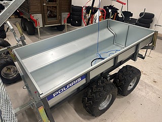 Polaris Timmervagn Komplett - komplett timmervagn med bom, vinsch med fjärrkontroll, timmersax samt tippbart insatsflak - monterat och klart! Prisvärd timmervagn för enklare typ av skogsarbete. Vagnen är justerbar i längd beroende på vilken längd du har på virket. Boggivagn med däck som har goda terrängegenskaper. Insatsflak av aluminium med avtagbara gavlar.