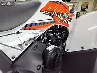 Elstart och kick-start ger trygg och enkel start i alla lägen. Den automatiska växellådan med CVT-variatordrift ger mjuk och steglös acceleration, där motorn hela tiden arbetar i sitt optimala effektområde för jämn kraft och lättkörd känsla. Växellägena är fram, back och neutral. Chassit har oberoende framfjädring med A-armar, dubbla trumbromsar fram, hydraulisk skivbroms bak, stel bakaxel samt ställbara stötdämpare. Modellen levereras även med justerbar gas och nödstoppslina för ökad säkerhet.